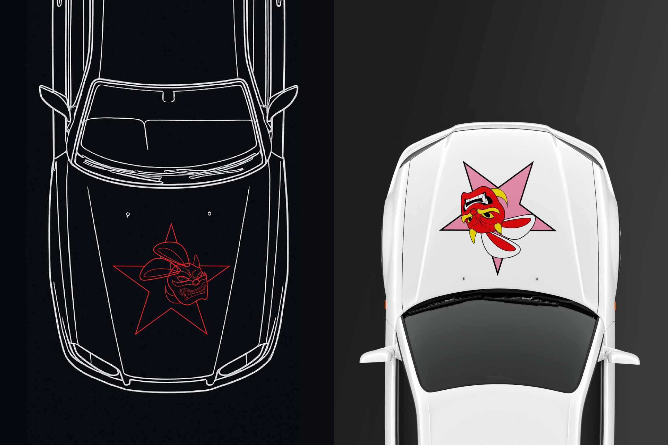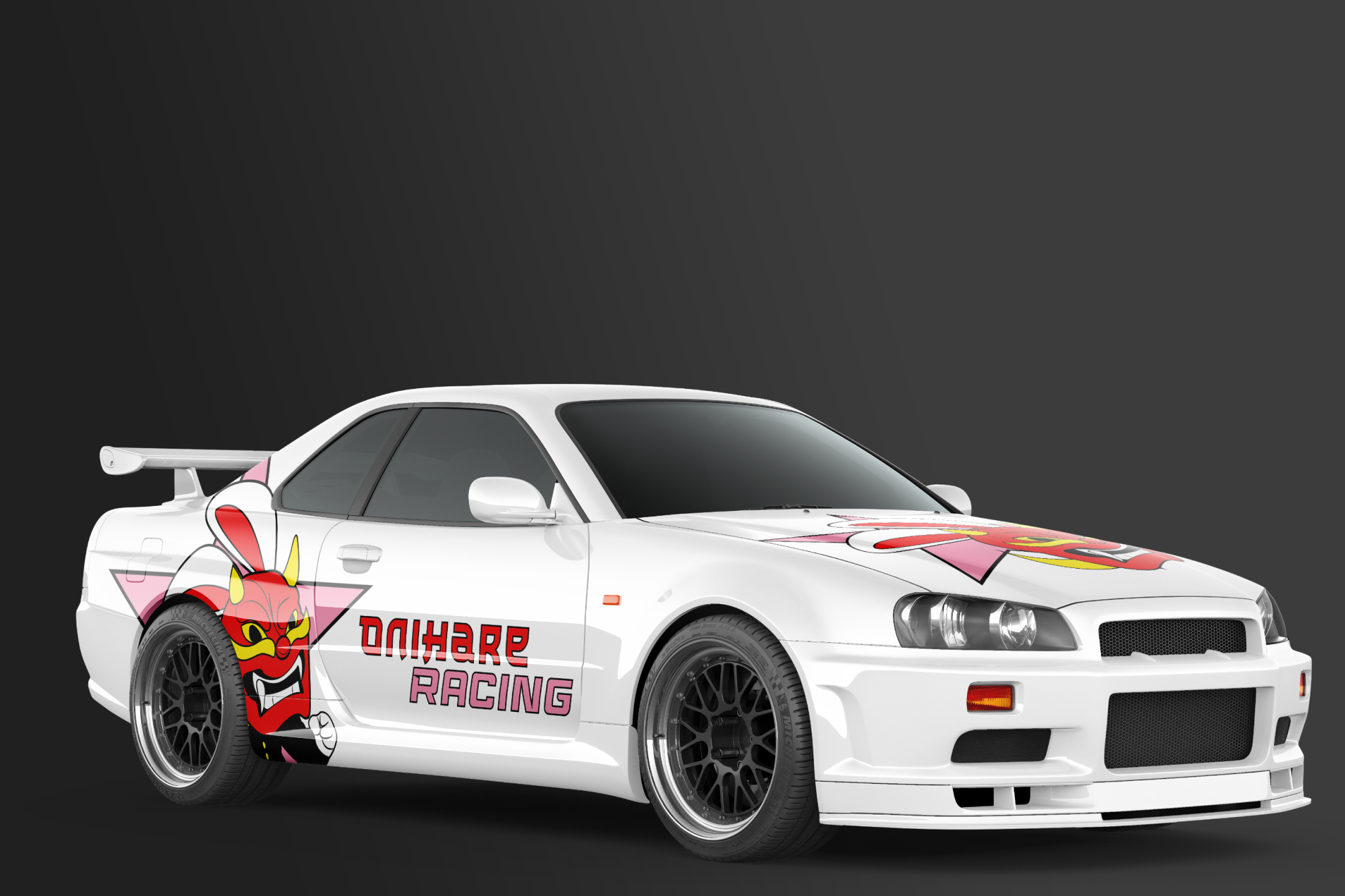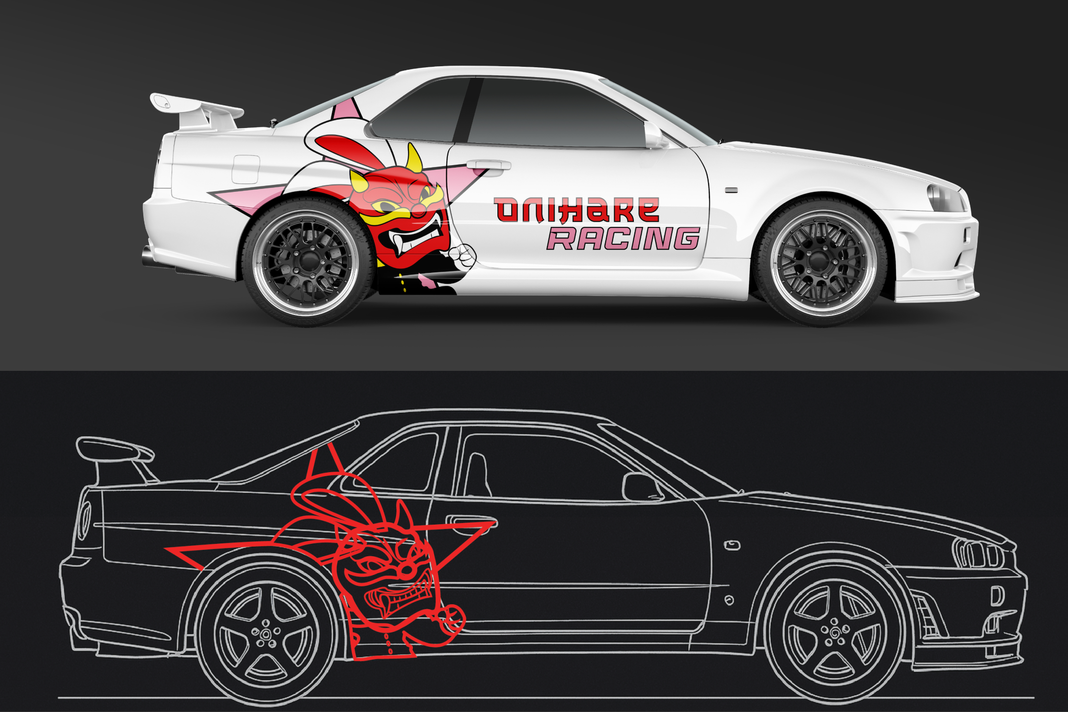 To solve this, a minimalist logo was designed that combined sleek, geometric typography with subtle references to Japanese culture, avoiding overused motifs. The mascot, a bunny wearing a demon mask, was chosen to symbolize the duality of the team: the bunny representing agility and speed, while the demon mask (Oni) conveyed power and intensity. This combination of soft and aggressive elements created a unique, memorable mascot that embodied both grace and fierce competitiveness, reflecting the team's identity in a fresh, impactful way. The design strategy focused on merging traditional symbols with modern sensibilities to craft an innovative visual identity that stands apart from typical racing team imagery.